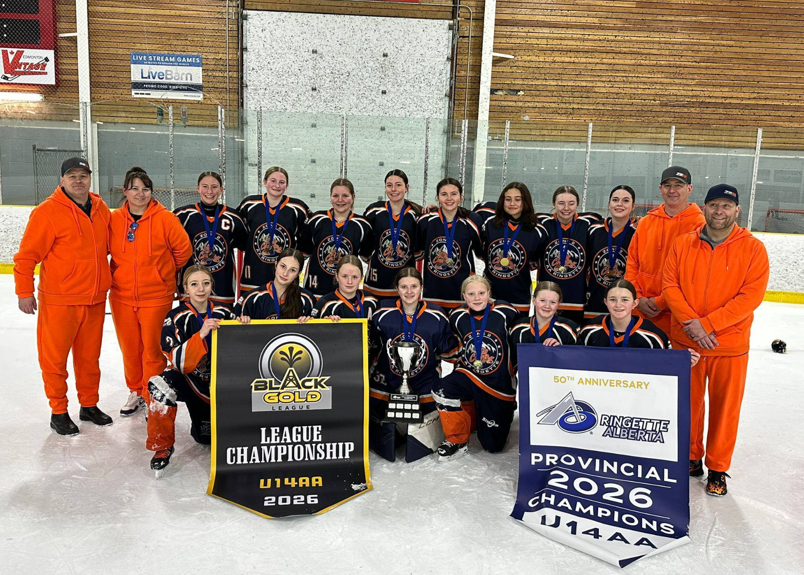 At the U14AA level, the Zone 2 AA Blaze captured the Provincial Championship title. With disciplined team play, relentless work ethic, and composure in key moments, they earned the banner and the honour of representing Alberta as Team Alberta at the upcoming Western Canadian Ringette Championships held in Saskatoon March 18 to 23, 2026.